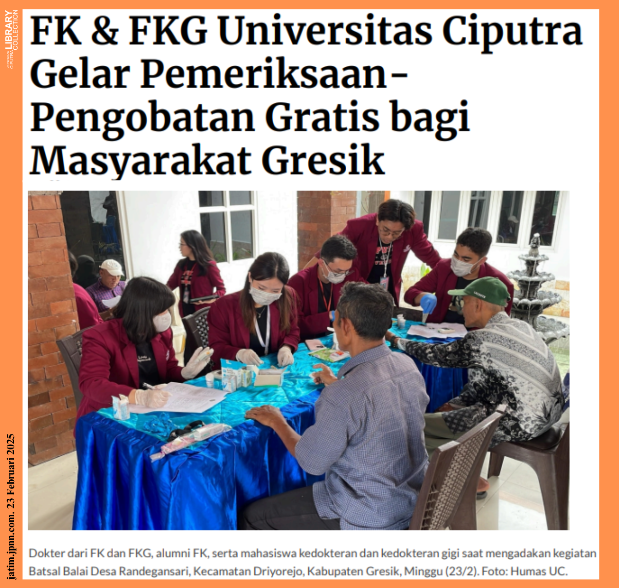 FK & FKG Universitas Ciputra Gelar Pemeriksaan-Pengobatan Gratis bagi Masyarakat Gresik