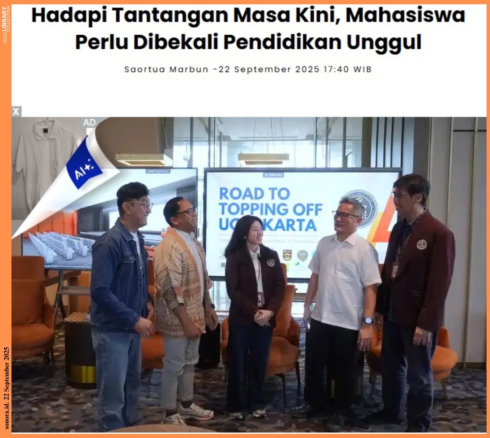 Momen ini bukan hanya perayaan konstruksi fisik, tetapi juga simbol komitmen UCJ untuk menghadirkan pendidikan unggul yang berani menjawab tantangan masa kini, khususnya yang dihadapi oleh perguruan tinggi swasta (PTS) di Indonesia.