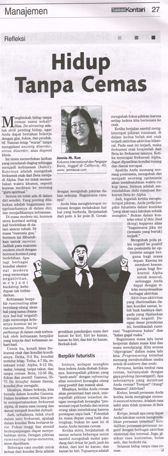 Selamat hidup tanpa rasa cemas.
