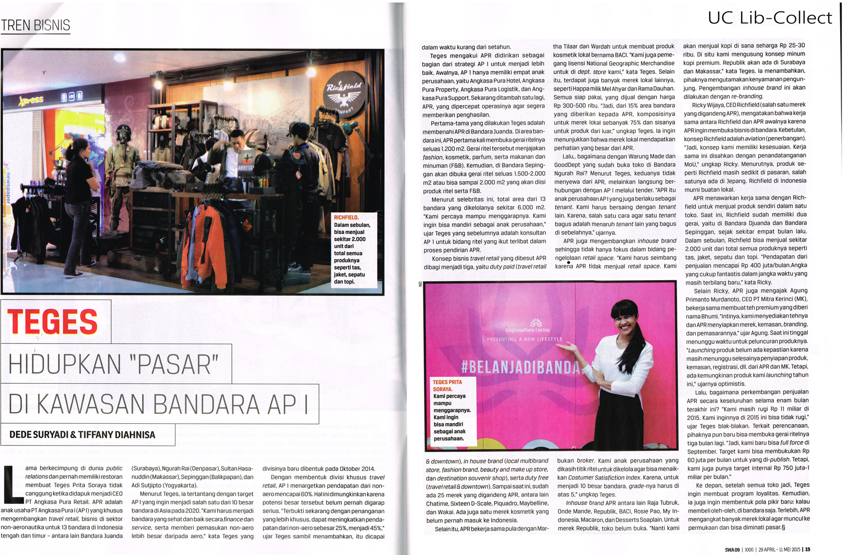 Menurut selebitis ini, total area dari 13 bandara yang dikelolahnya sekitar 6.000 m2.”kami percaya mampu menggarapnya. Kami ingin bisa mandiri sebagai anak perusahaan,” ujar Teges yang sebelumnya adalah konsultan AP I untuk bidang ritel yang ikut terlibat dalam proses pendirian APR.