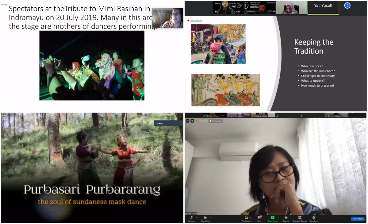 Yati Yusoff mempresentasikan bagaimana para praktisi menjaga tradisi topeng tetap hidup dan mengapa penting untuk mengadaptasi presentasi pertunjukan topeng kepada khalayak baru. Sebagai pembuka, Ibu Yati Yusoff memberikan pengenalan mengenai budaya Topeng di Asia Tenggara khususnya yang banyak mendapatkan pengaruh dari Agama Hindu. Kemudian dilanjutkan dengan mempresentasikan bagaimana seharusnya generasi muda melestarikan budaya topeng, karena budaya adalah untuk berbagi. Dengan berkolaborasi, melibatkan artis dengan berbagai genre, serta pemanfaatan teknologi maka akan tradisi topeng masih dapat relevan dengan audiens baru. Yati Yudoff mengingatkan bahwa hal tersebut sangat mungkin terjadi jika seluruh elemen dalam pertunjukan topeng mampu memperbarui dirinya melalui narasi baru dan teknologi teater untuk menangkap kembali minat orang-orang dari berbagai komunitas. Pelaku dan produsen harus memiliki kepekaan terhadap kebutuhan dan minat khalayak global baru untuk memastikan keberlangsungannya.
