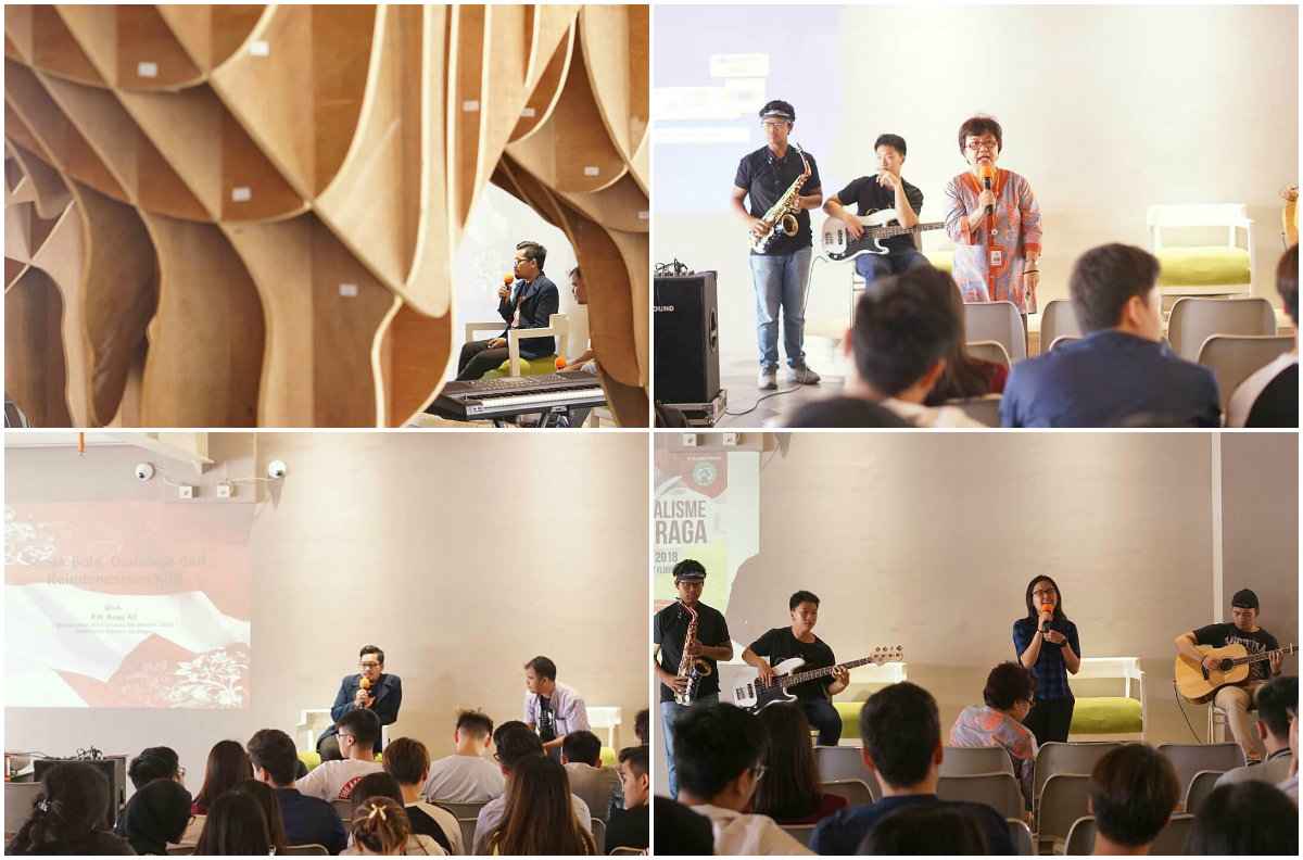 Acara yang dimulai sekitar pkl 09.30 wib ini, mengajak Rojil Nugroho Bayu Aji [Sejarawan UNESA, menggeluti kajian sejarah olahraga terutama sepak bola] sebagai pembicara dan dijelaskan bahwa tak dapat dipungkiri lagi bahwa olahraga adalah bagian dari kehidupan berbangsa dan bernegara. Pada masa orde baru, WNI keturunan dibatasi kiprahnya di ruang publik seperti di kantor-kantor pemerintah dan universitas. Namun hal tersebut tidak berlaku di dunia olahraga. Dunia olahraga tidak mengenal dikriminasi. Sebagai contoh atlet bulutangkis Indonesia yang berhasil mengharumkan nama bangsa di dunia internasional adalah keturunan Tionghoa.