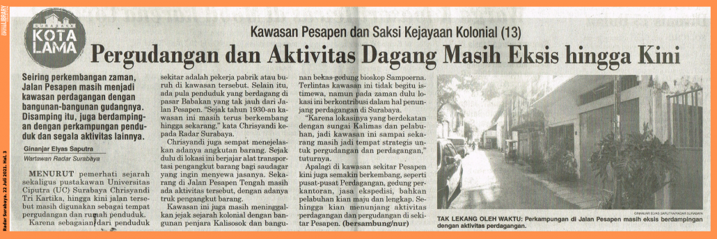 “Karena lokasinya yang berdekatan dengan sungai Kalimas dan pelabuhan, jadi kawasan ini sampai sekarang masih jadi tempat strategis untuk pergudangan dan perdagangan,” tuturnya.