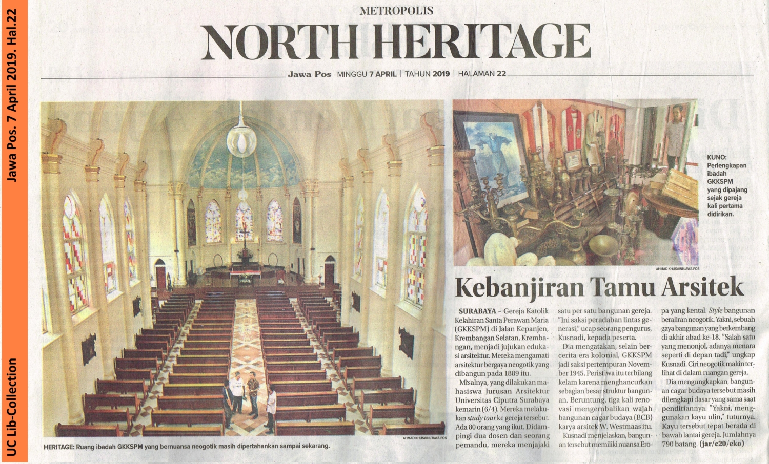 Misalnya, yang dilakukan mahasiswa Jurusan Arsitektur Universitas Ciputra Surabaya kemarin (6/4). Mereka melakukan study tour ke gereja tersebut. Ada 80 orang yang ikut. Didampingi dua dosen dan seorang pemandu, mereka menjajaki satu per satu bangunan gereja. “Ini saksi peradaban lintas generasi,” ucap seorang pengurus, Kusnadi, kepada peserta.
