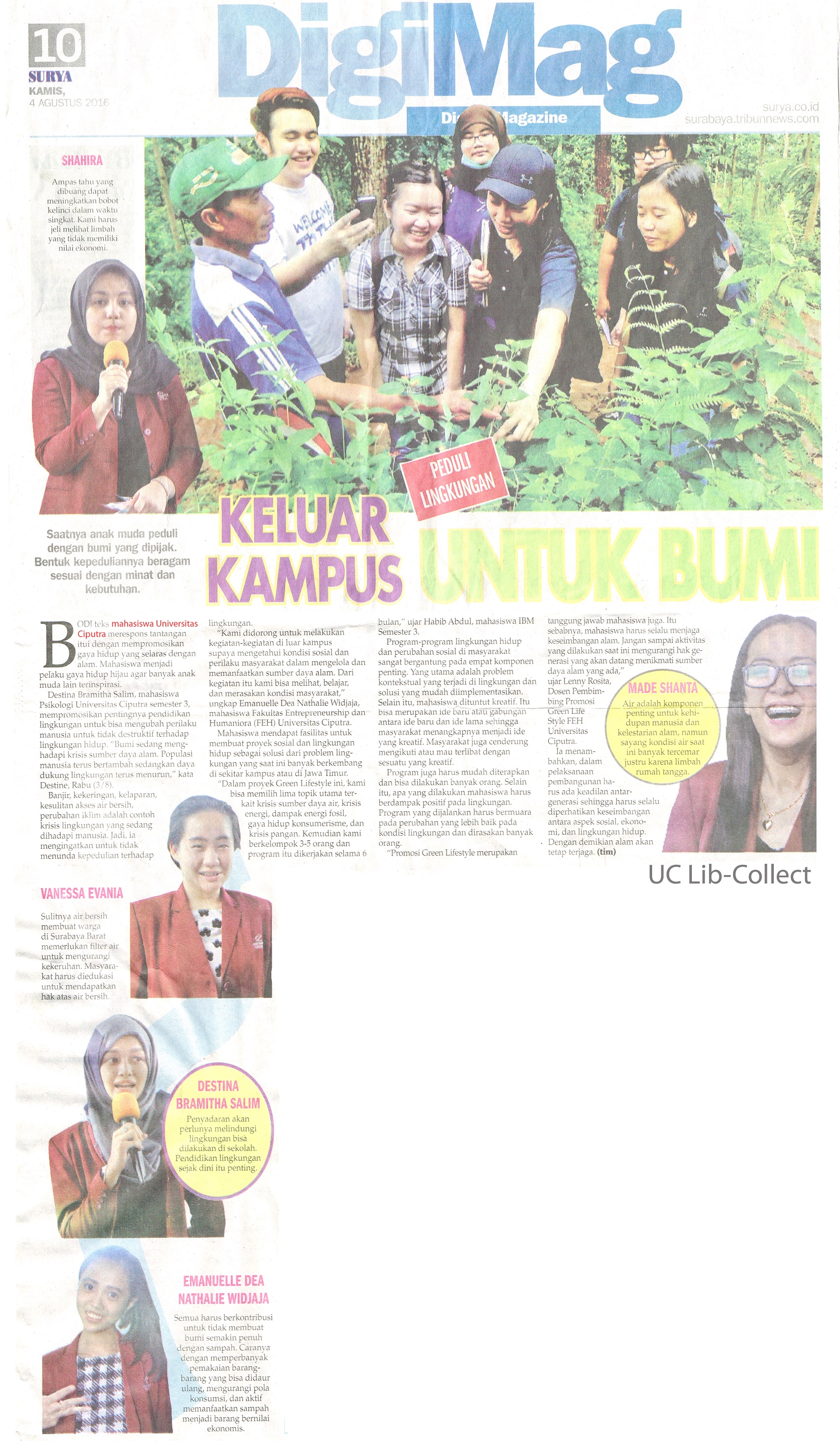 Keluar Kampus Untuk Bumi. Surya.4 Agustus 2016. Hal.10