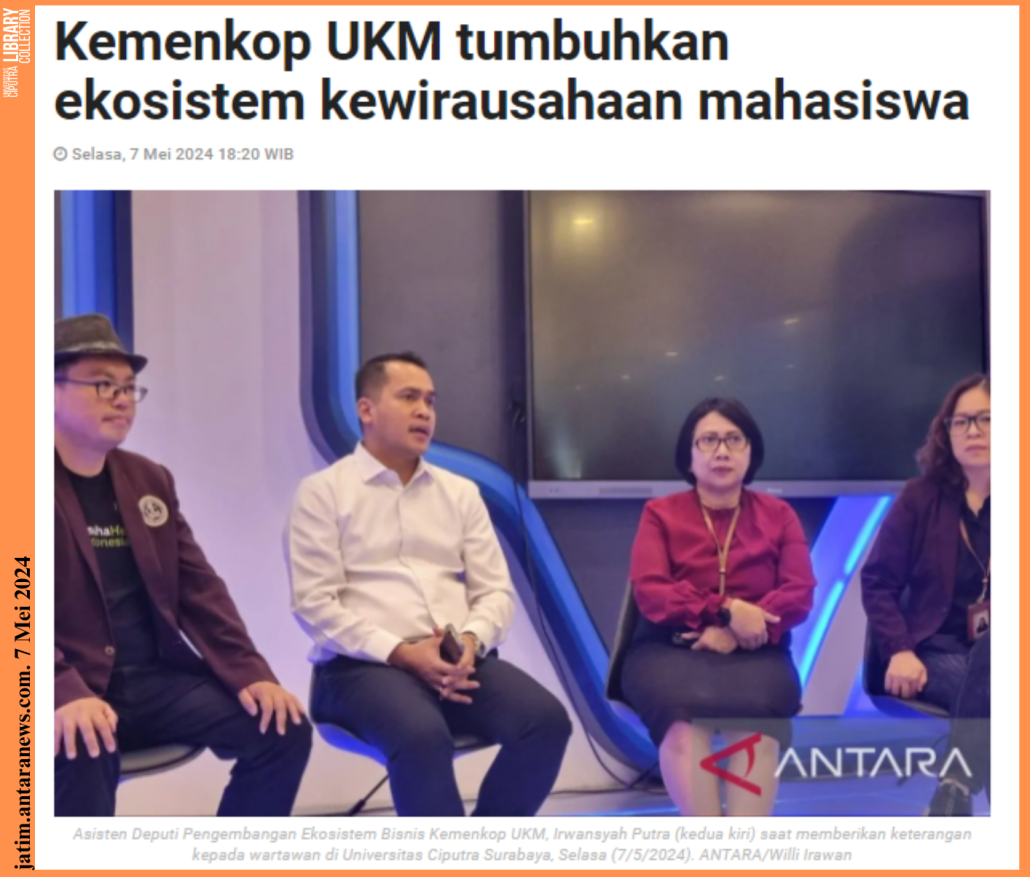 Irwan mengungkapkan Universitas Ciputra Surabaya dipilih sebagai mitra kolaborasi karena memiliki peran strategis sebagai perguruan tinggi yang mengintegrasikan nilai entrepreneurship dalam kurikulum pendidikan yang dijalankan, dengan tagline Creating World Class Entrepreneur.