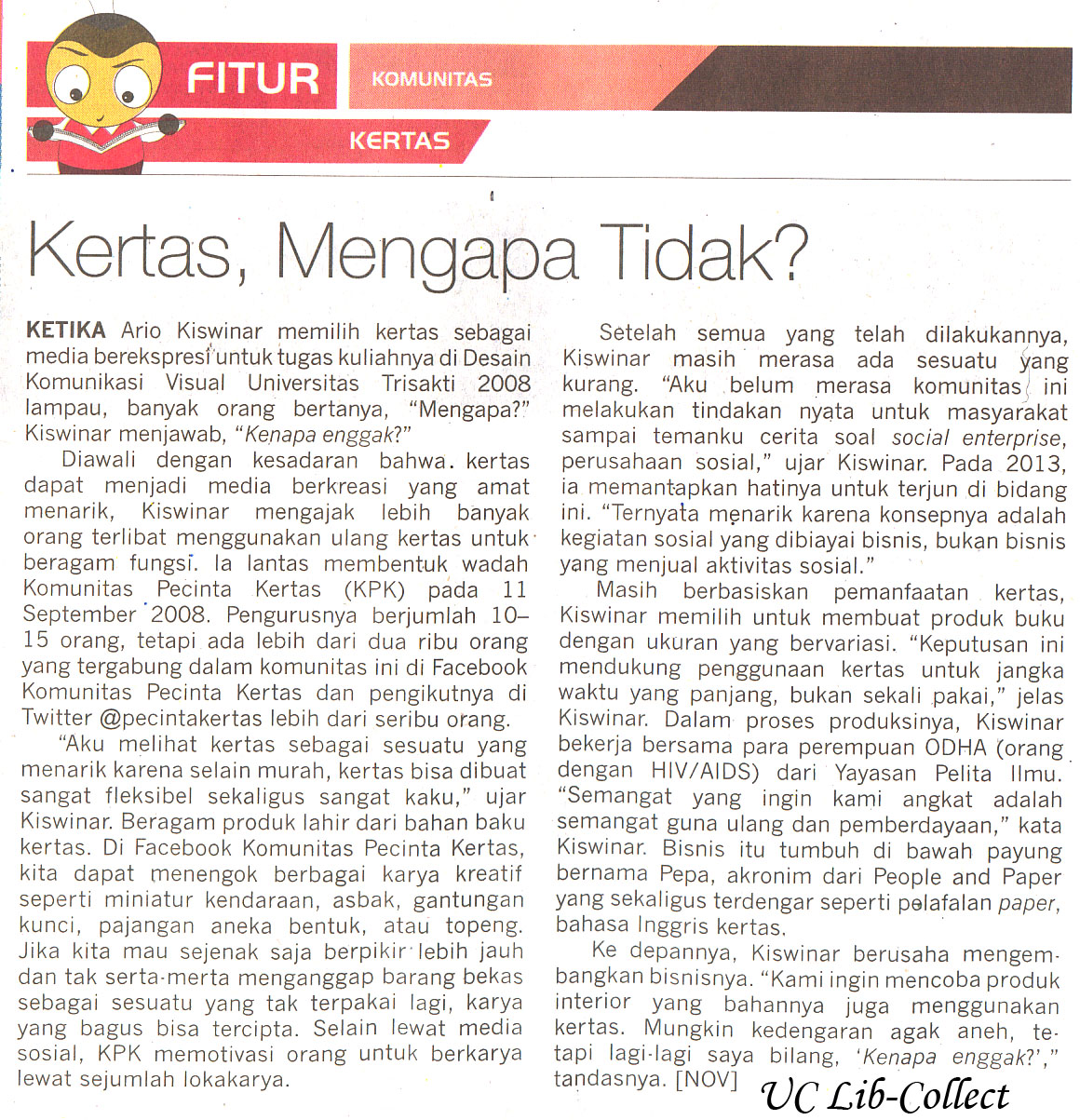 Kertas, Mengapa Tidak.Kompas 25 Januari 2014.Hal.41