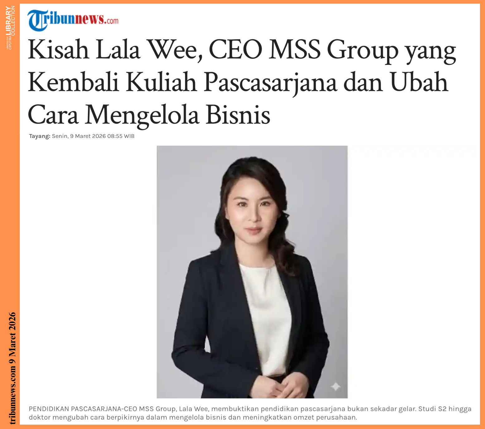 TRIBUNNEWS.COM – Belajar tidak pernah mengenal kata selesai bagi Lala Wee. Di tengah kesibukannya sebagai CEO MSS Group dan ibu dari dua anak, ia tetap memilih kembali ke bangku kuliah.