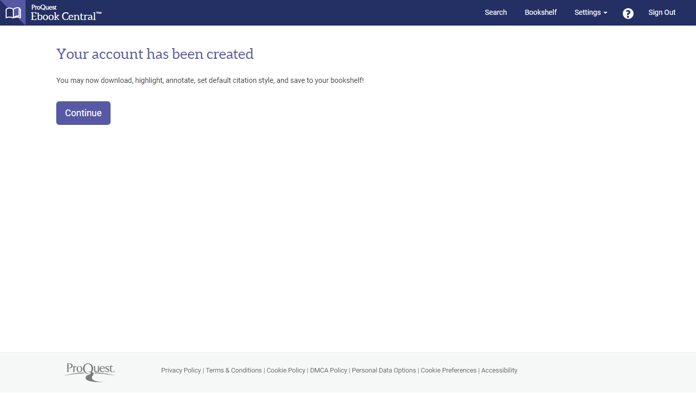 5. Apabila proses pembuatan akun ProQuest telah berhasil akan muncul tampilan seperti di bawah.