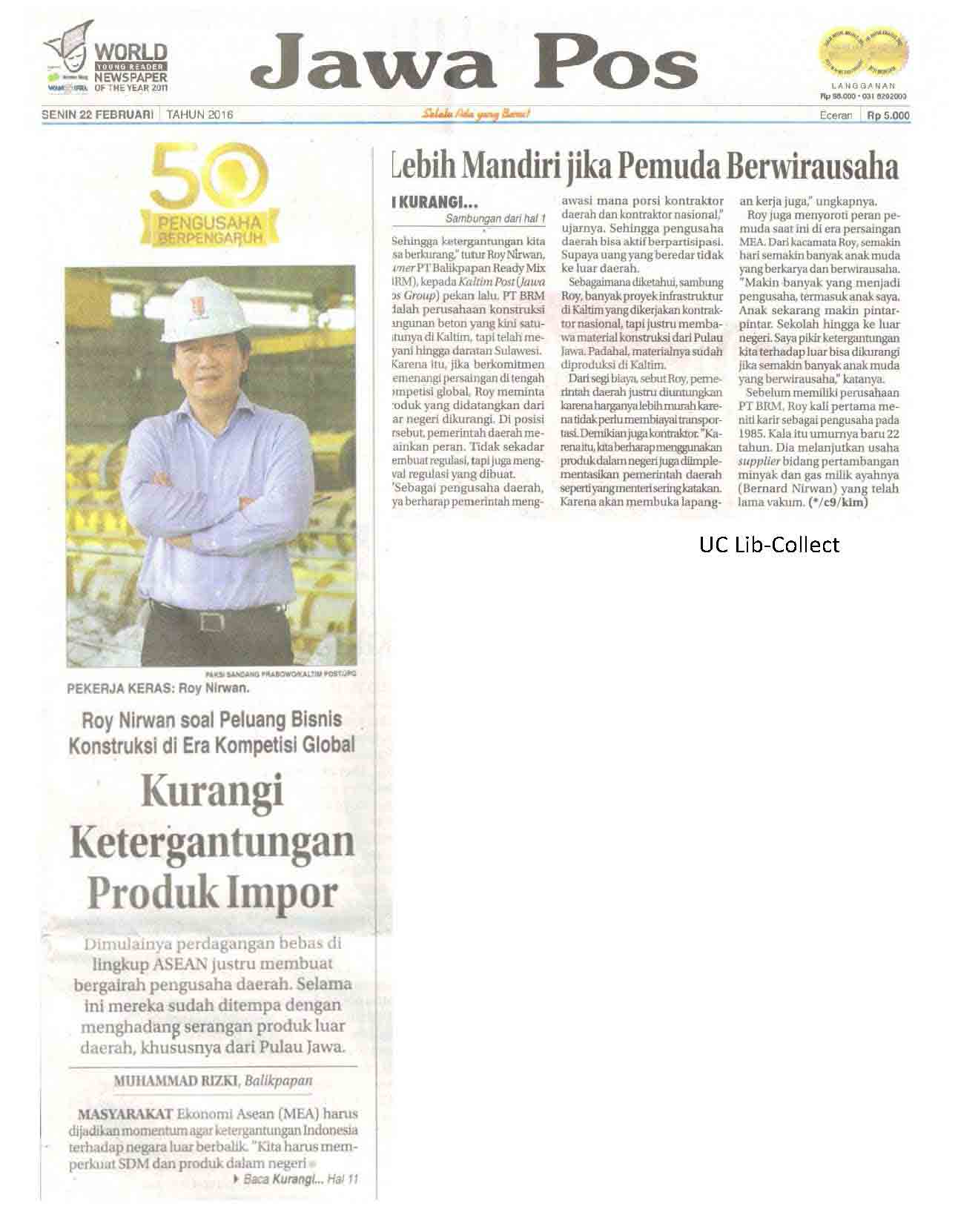 Sumber : Jawa Pos 22 Februari 2016 halaman 1, sambungan ke halaman 11