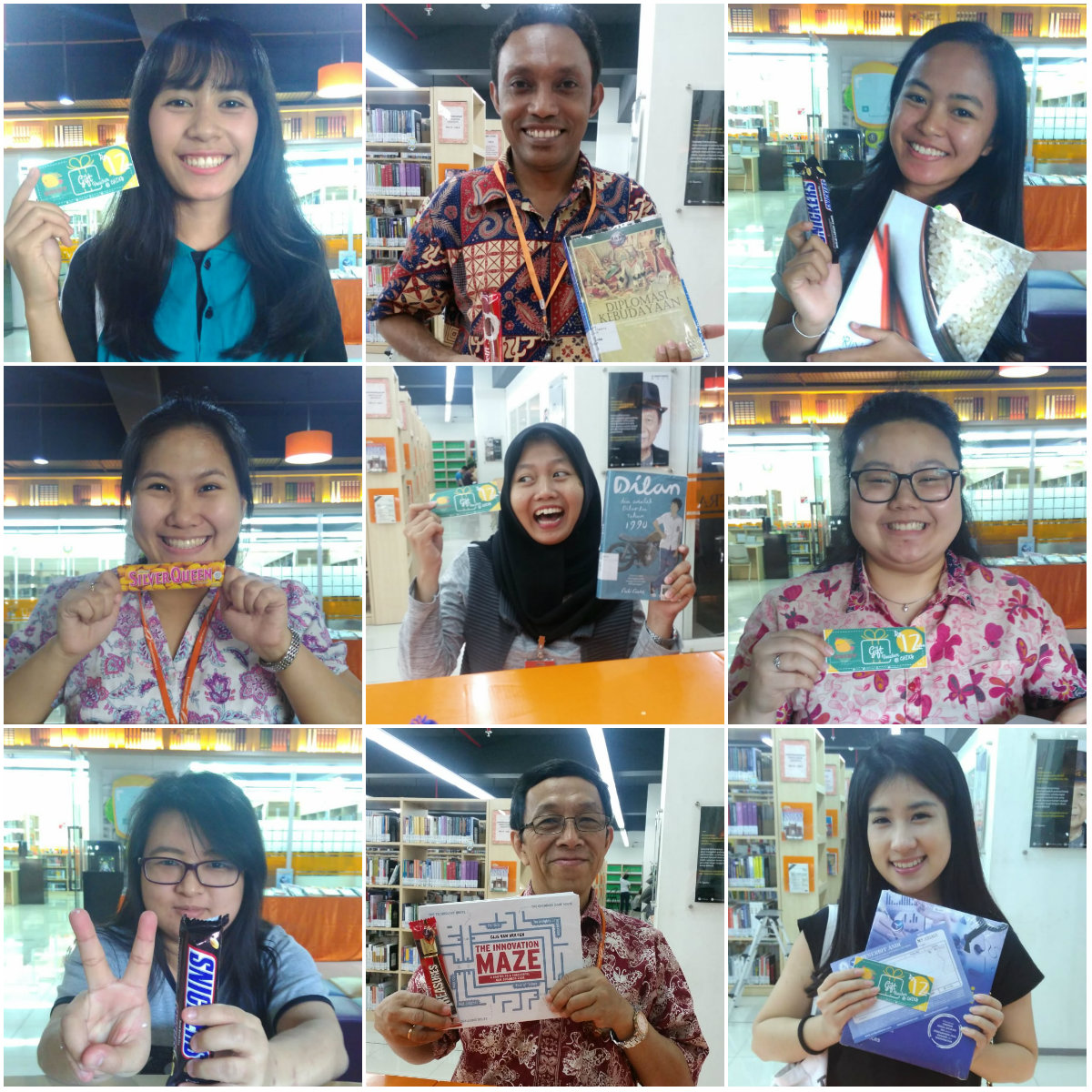 Dalam rangka memperingati HUT Universitas Ciputra ke XII (26 Agustus 2018), UC Library bagi-bagi kejutan spesial buat para pengunjung Perpustakaan. Dalam tajuk “Library August Surprise”, UC Library membagikan hadiah-hadiah berupa coklat, voucher seharga Rp 12.000,- dari Chixy dan Dean Canteen kepada para pengunjung yang beruntung mulai dari tanggal 20-31 Agustus 2018. Pemenang pun didapatkan dari berbagai cara yang sudah dirancang oleh UC Library, mulai dari para pemustaka yang meminjam dan mengembalikan koleksi yang dipilih secara acak, para pengunjung pertama dan terakhir yang ada di Library, penonton Movie Time, yang berhasil menemukan buku di kuis Instagram Stories UC Library, serta para pembeli buku di ‘Book Bazaar at Library’. Selamat kepada penerima hadiah, dan sampai jumpa di kejutan-kejutan selanjutnya. ?