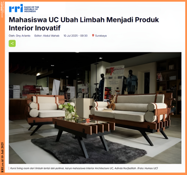Sumber : https://rri.co.id/surabaya/iptek/1640294/mahasiswa-uc-ubah-limbah-menjadi-produk-interior-inovatif