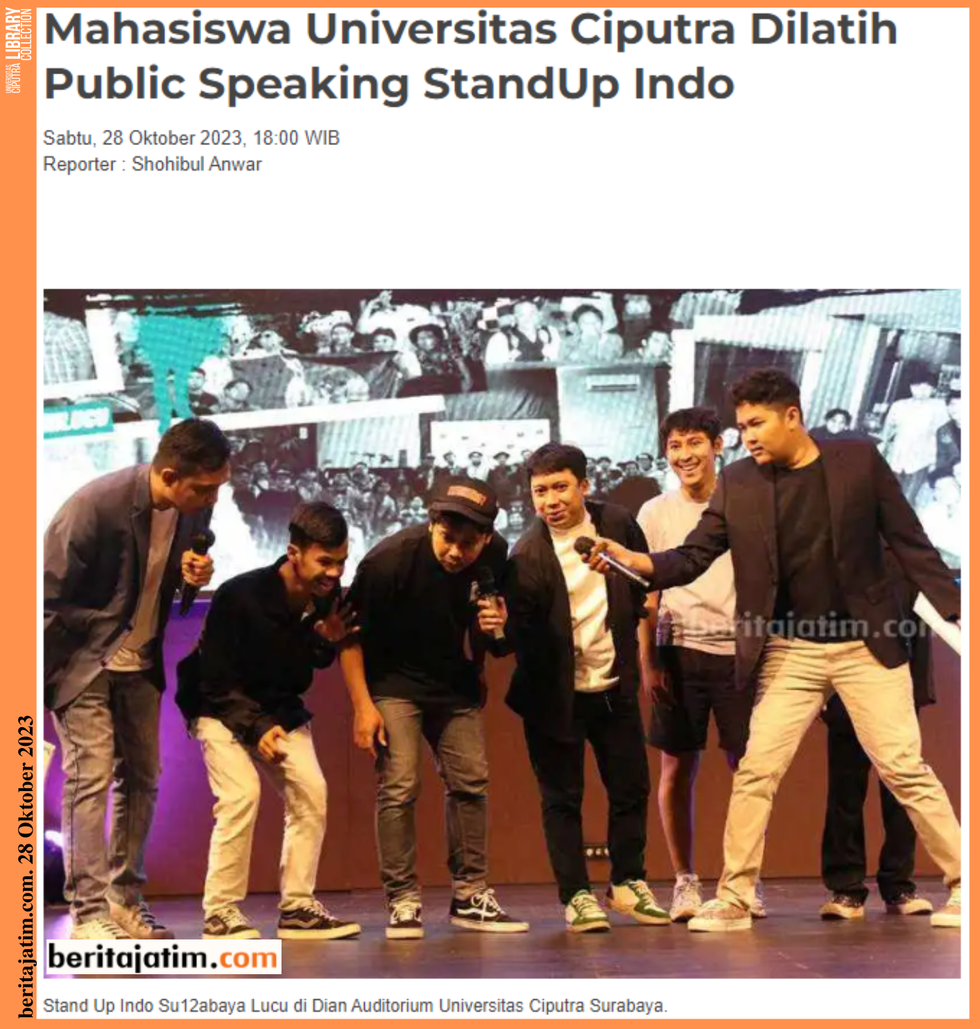 Sumber berita:https://beritajatim.com/pendidikan-kesehatan/mahasiswa-universitas-ciputra-dilatih-public-speaking-standup-indo/
