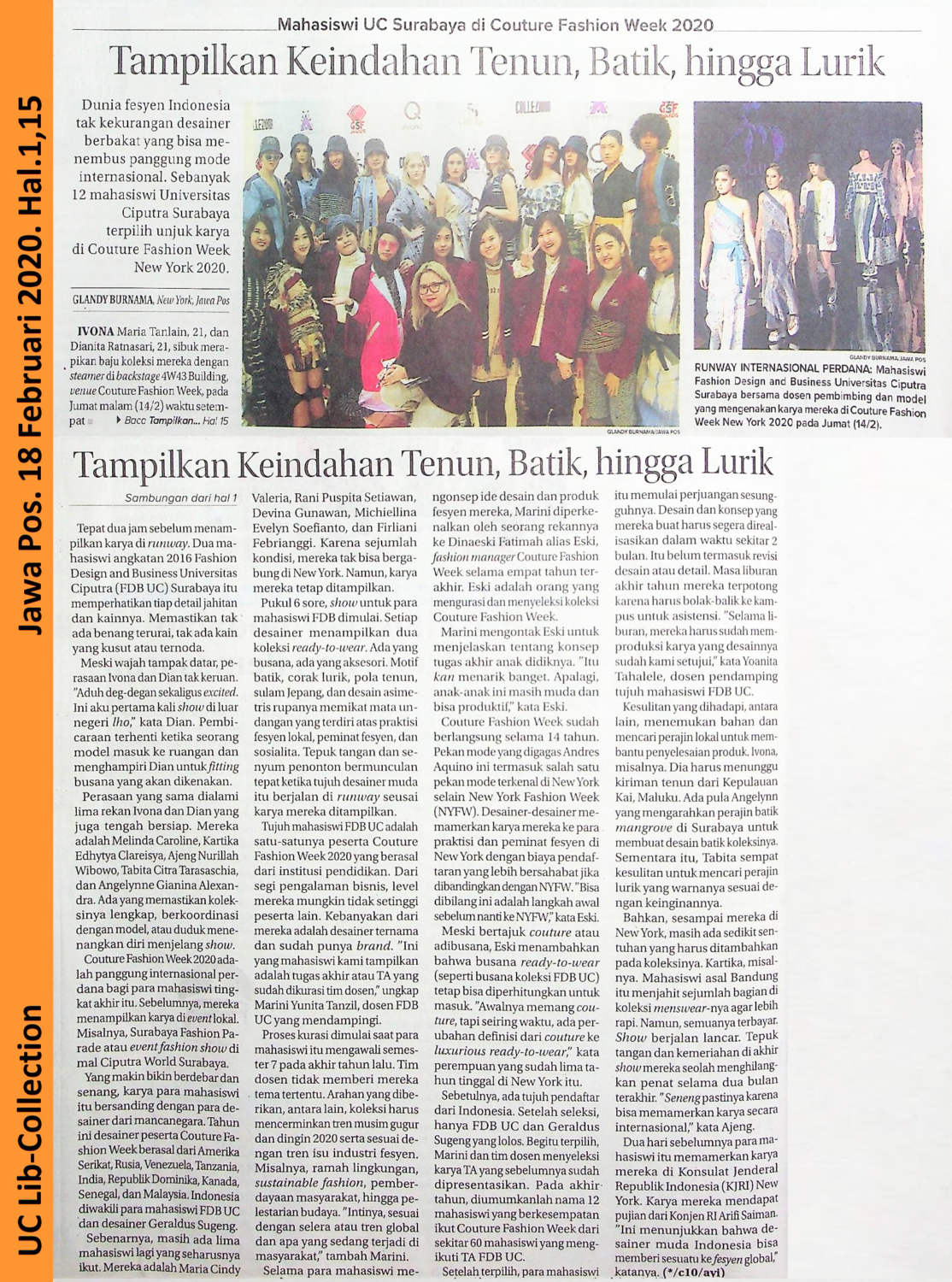Dunia fesyen Indonesia tak kekurangan desainer berbakat yang bisa menembus panggung mode internasional. Sebanyak 12 mahasiswi Universitas Ciputra Surabaya terpilih unjuk karya di Couture Fashion Week New York 2020.