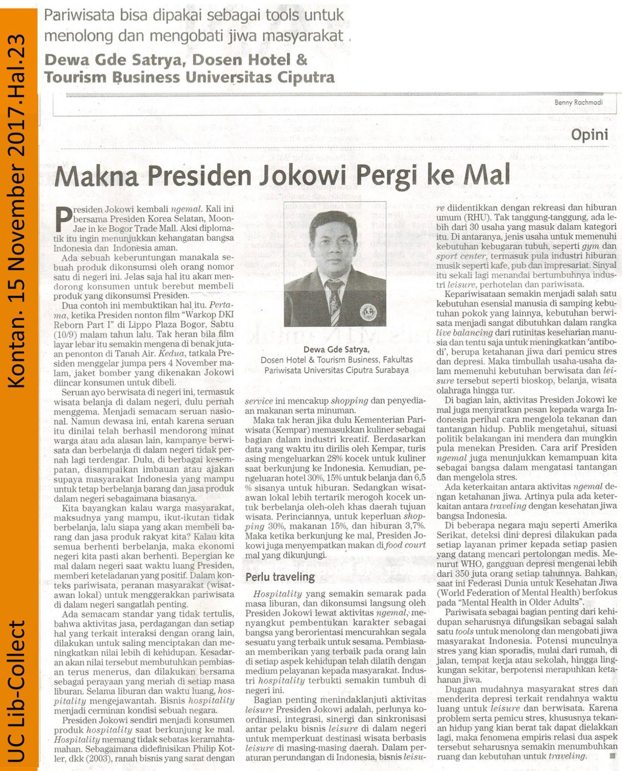 Oleh Dewa Gde Satrya (Dosen Hotel & Business, Fakultas Pariwisata, Universitas Ciputra Surabaya)