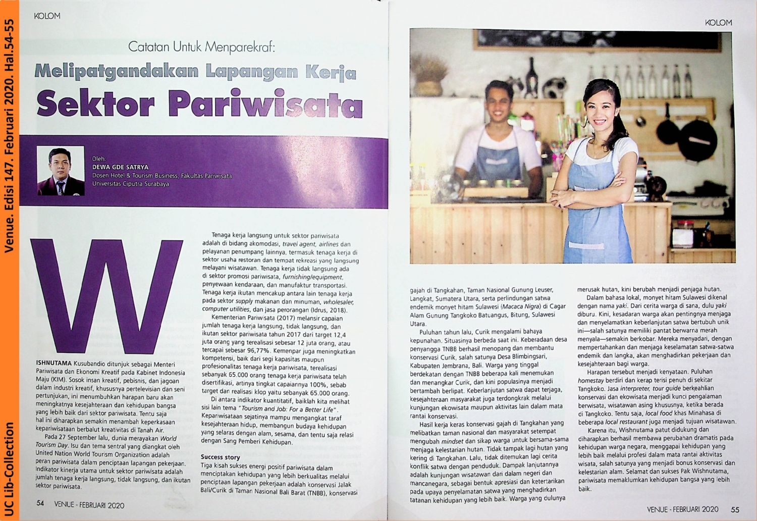 Pada 27 September lalu, dunia merayakan World Tourism Day. Isu dan tema sentral yang diangkat oleh United Nation World Tourism Organization adalah peran pariwisata dalam penciptaan lapangan pekerjaan. Indikator kinerja utama untuk sektor pariwisata adalah jumlah tenaga kerja langsung, tidak langsung, dan ikutan sektor pariwisata.
