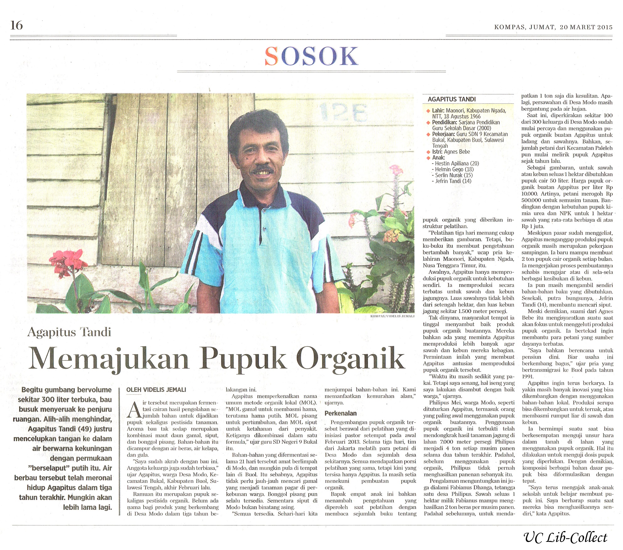 Bapak empat anak ini bahkan menambah pengetahuan yang diperoleh saat pelatihan dengan membaca sejumlah buku tentang pupuk organic yang diberikan instruktur pelatihan. “Pelatihan tiga hari memang cukup memberikan gambaran. Tetapi, buku- buku itu mebuat pengetahuan bertambah banyak,” ucap pria kelahiran Maonari, Kabupaten Ngada, Nusa Tenggara Timur.