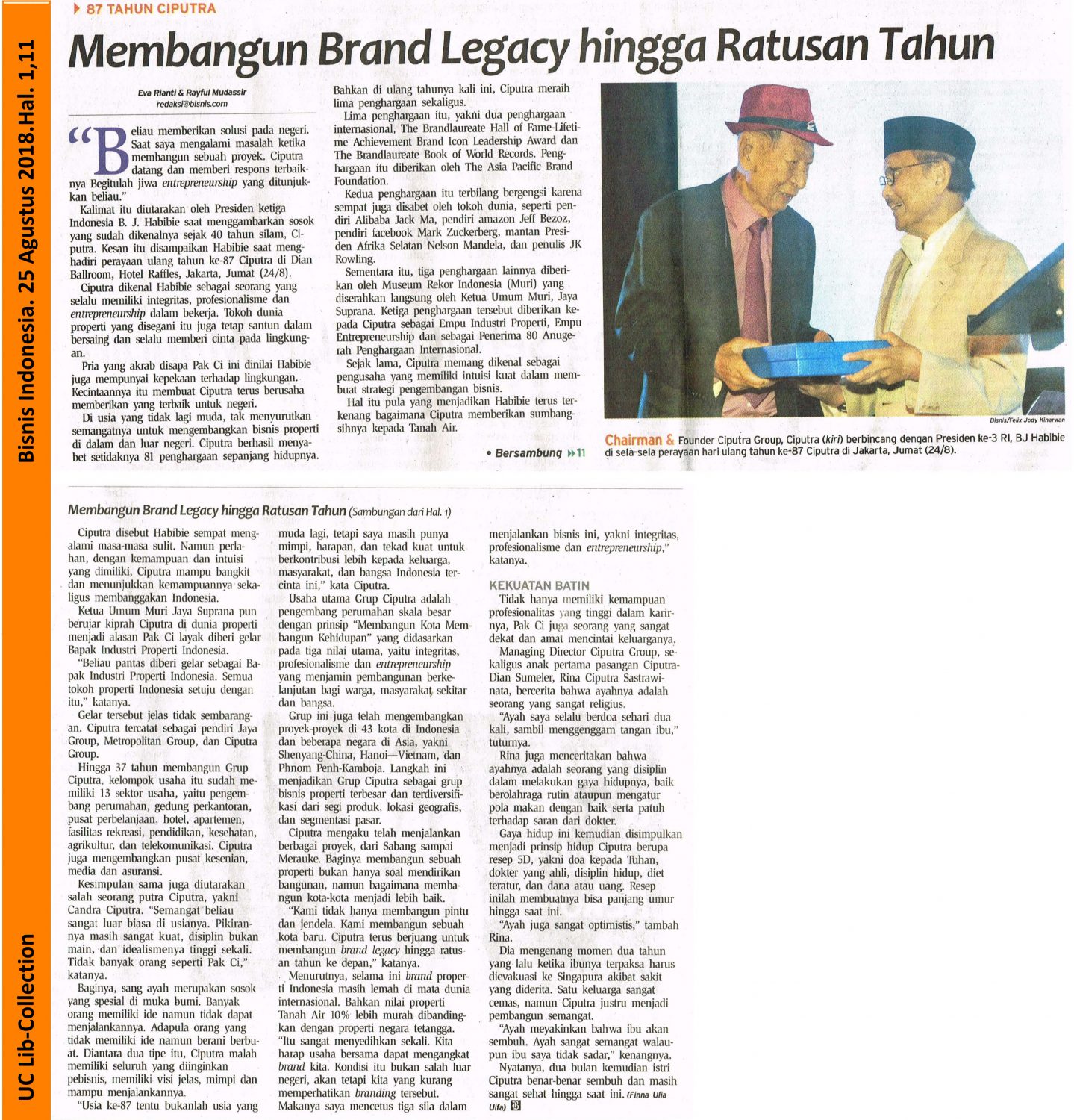Sumber : Bisnis-Indonesia.25-Agustus-2018.Hal.1,11_Ciputra