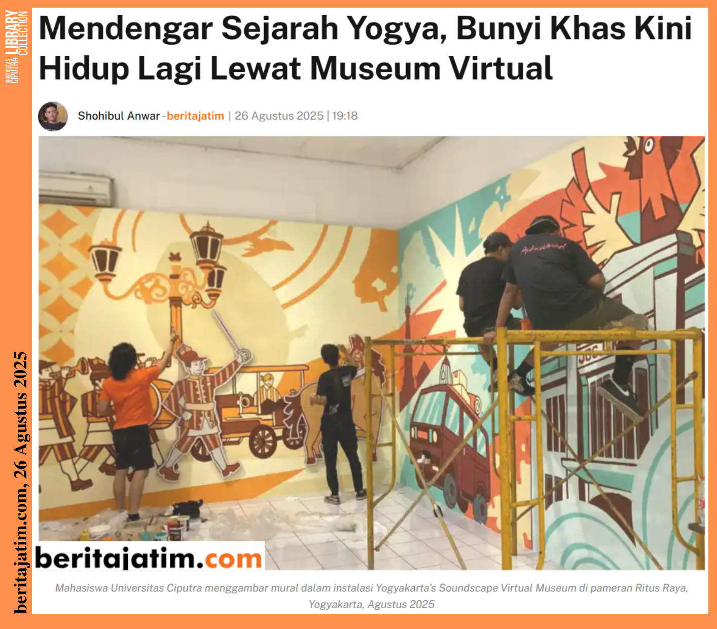 Surabaya (beritajatim.com) – Sejarah Yogyakarta kini bisa didengar kembali. Bunyi khas kota budaya itu, mulai dari derap andong di Malioboro, kicau burung pagi, hingga drumband subuh, diabadikan dalam Yogyakarta’s Soundscape Virtual Museum, inovasi digital karya Universitas Ciputra (UC) Surabaya.