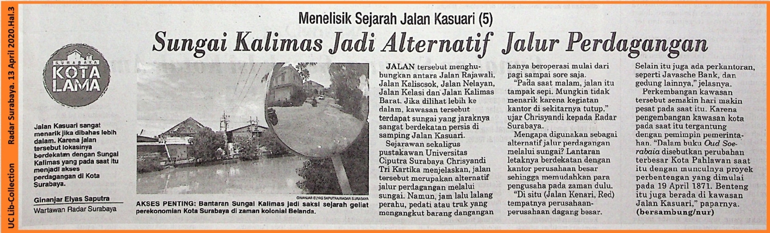 Jalan Kasuari sangat menarik jika dibahas lebih dalam . Karena jalan tersebut lokasinya berdekatan dengan Sungai Kalimas yang pada saat itu menjadi akses perdagangan di Kota Surabaya.