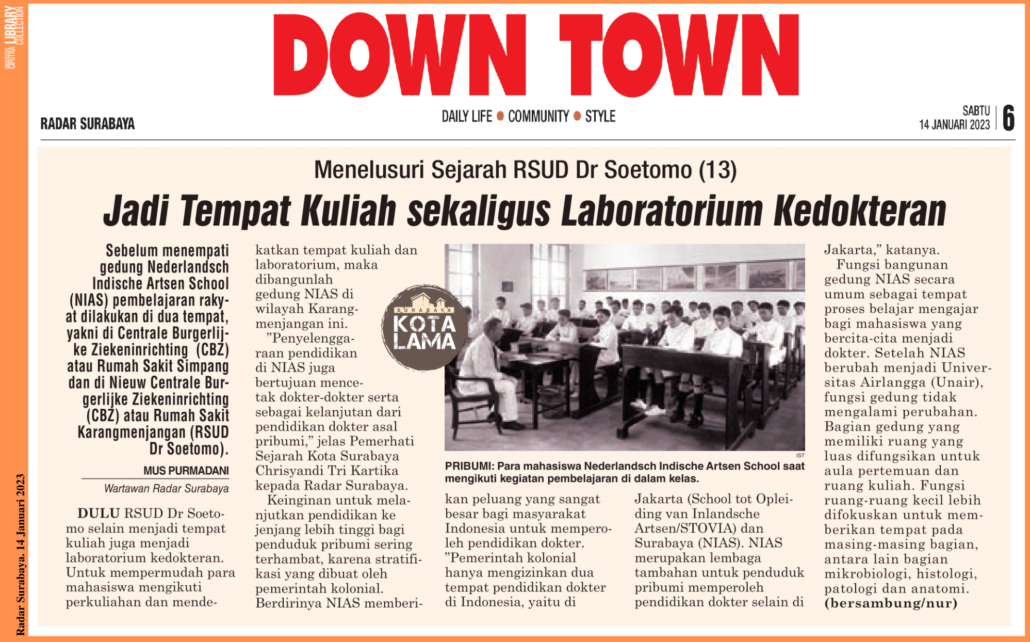 “Penyelenggaraan pendidikan di NIAS juga bertujuan mecetak dokter-dokter serta sebagai kelanjutan dari pendidikan dokter asal pribumi,” jelas pemerhati sejarah Kota Surabaya Chrisyandi Tri Kartika kepada Radar Surabaya.