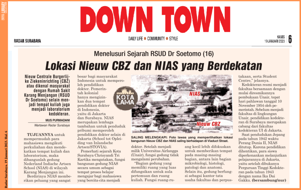 Menelusuri Sejarah RSUD Dr Soetomo (16). Lokasi Nieuw CBZ dan NIAS yang Berdekatan.