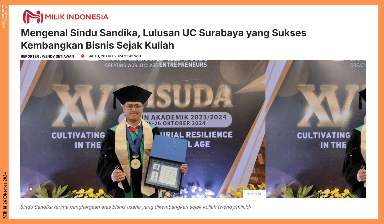 Sumber :Mengenal Sindu Sandika, Lulusan UC Surabaya yang Sukses Kembangkan Bisnis Sejak Kuliah