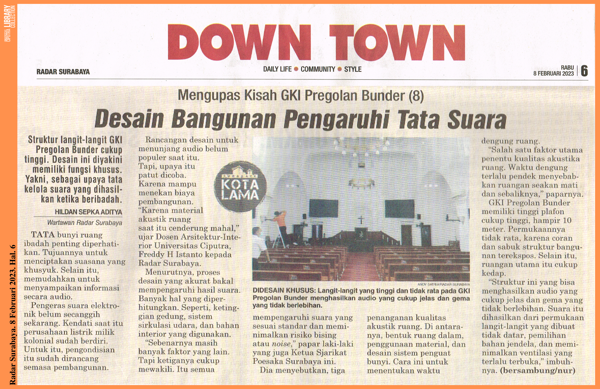 “Struktur ini yang bisa menghasilkan audio yang cukup jelas dan gema yang tidak belebihan. Suara itu dihasilkan dari permukaan langit-langit yang dibuat tidak datar, pemilihan bahan jendela, dan meminimalkan ventilasi yang terbuka,” imbuhnya. (bersambung/nur)