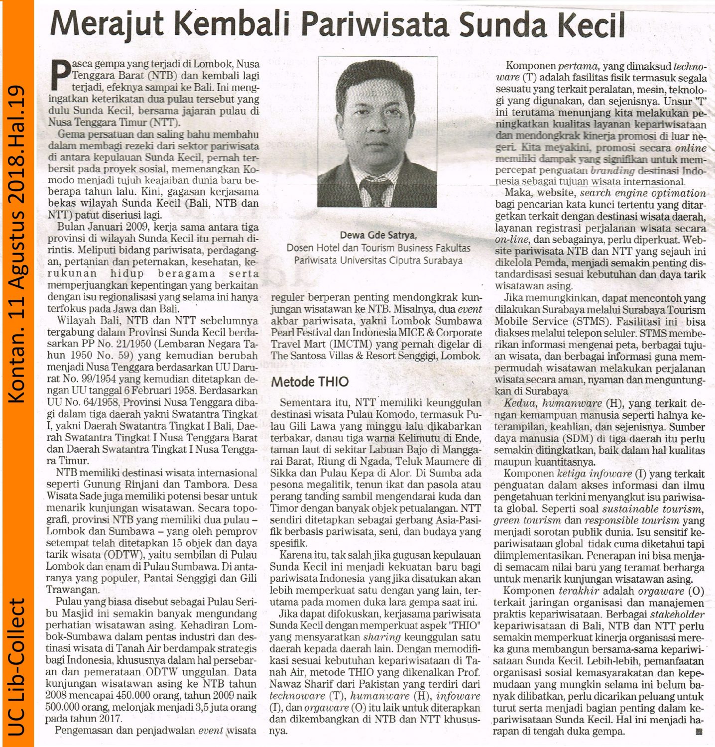 Oleh Dewa Gde Satrya Dosen Fakultas Pariwisata Universitas Ciputra