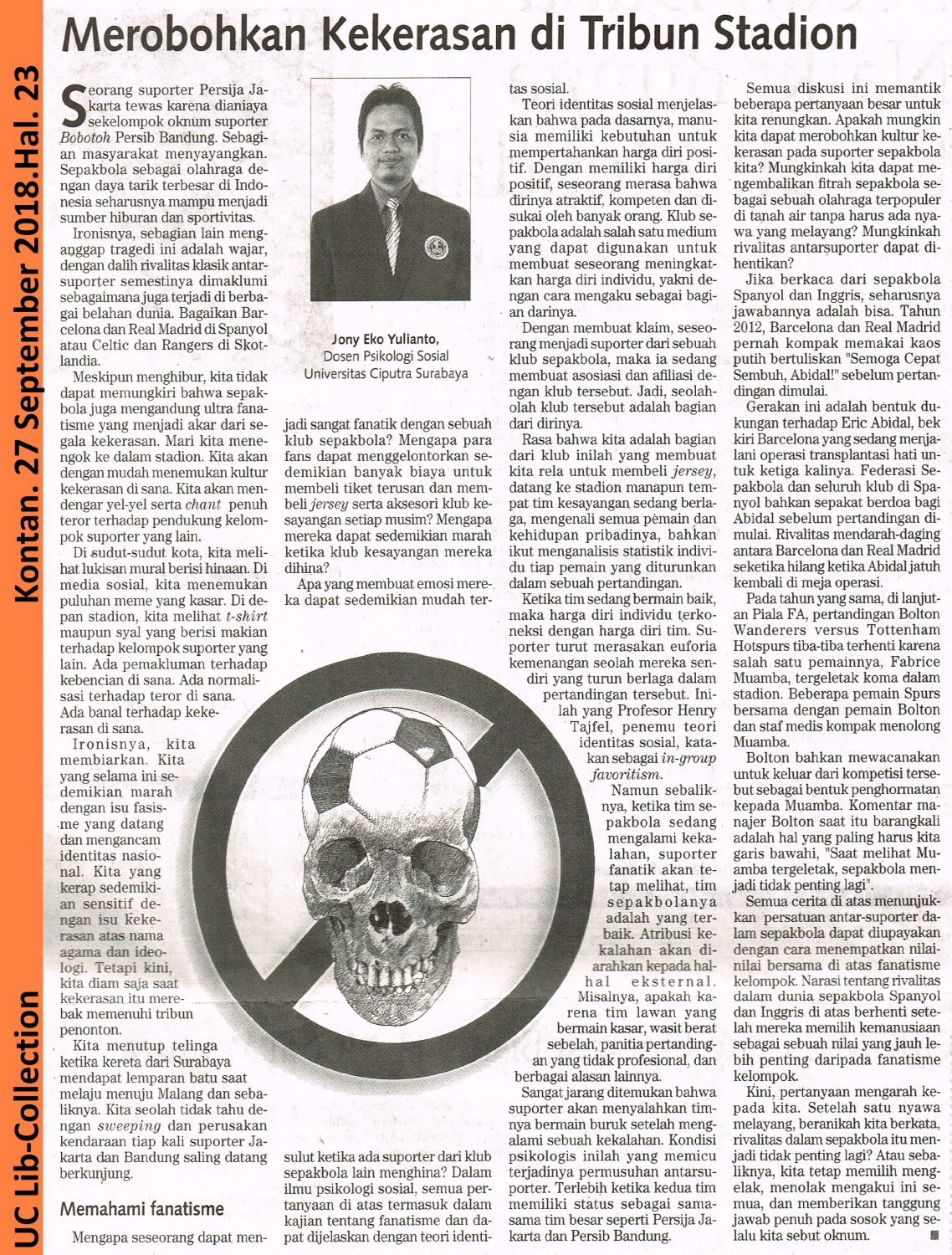 Oleh Jony Eko Yulianto (Dosen Psikologi Sosial Universitas Ciputra Surabaya)
