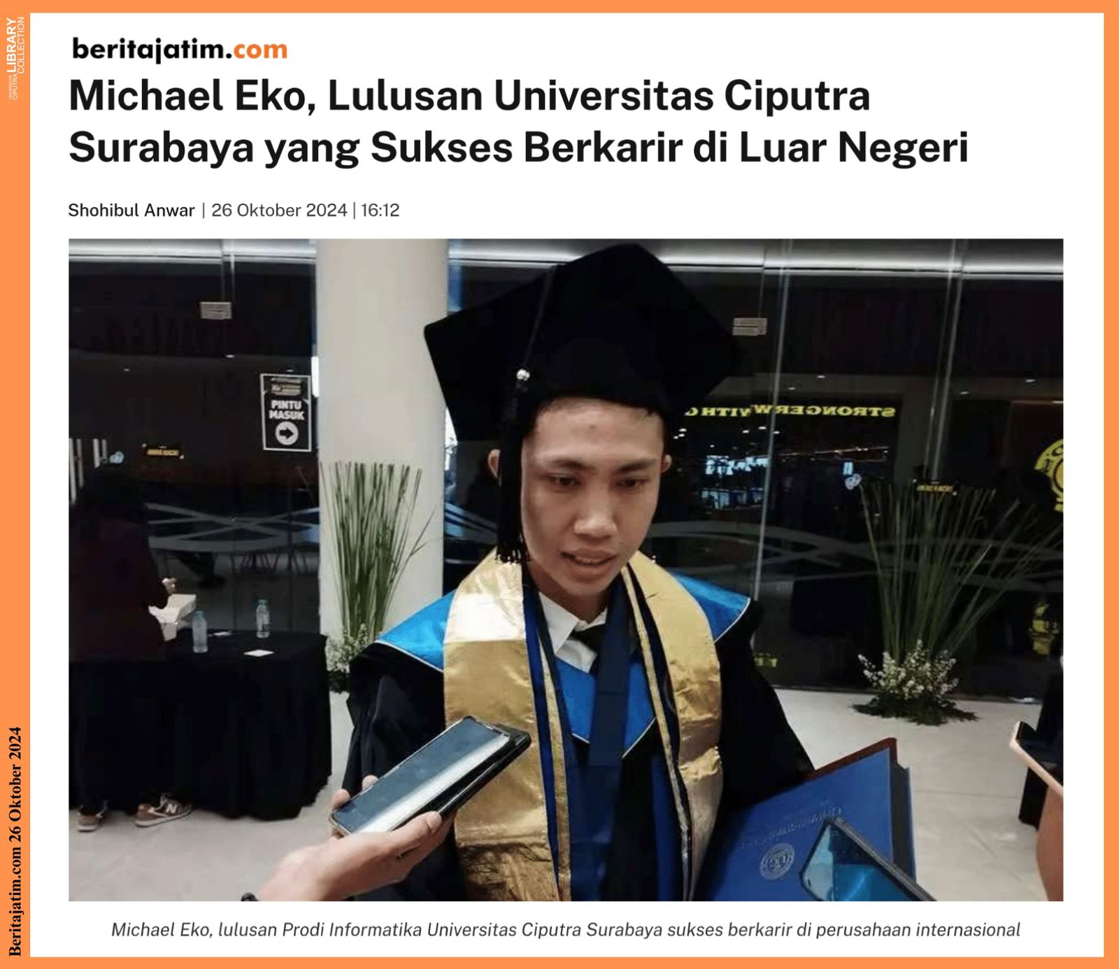 Sumber : Michael Eko, Lulusan Universitas Ciputra Surabaya yang Sukses Berkarir di Luar Negeri