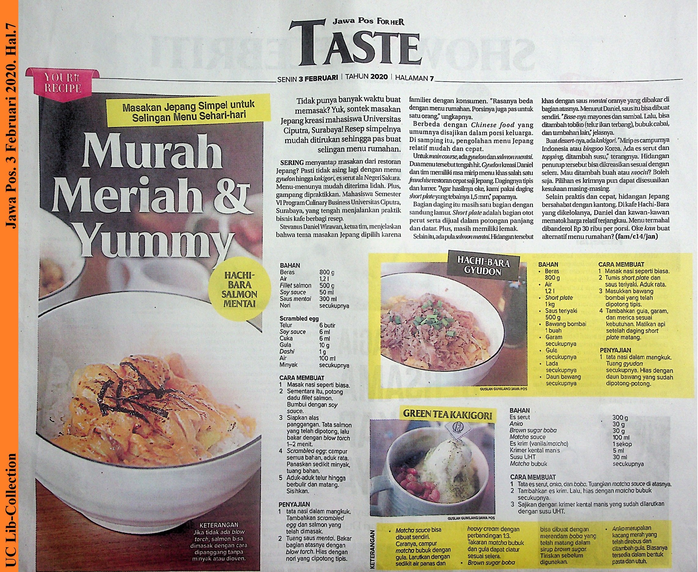 Tidak punya banyak waktu buat memasak? Yuk, sontek masakan Jepang kreasi mahasiswa Universitas Ciputra, Surabaya! Resep simpelnya mudah ditirukan sehingga pas buat selingan menu rumahan.