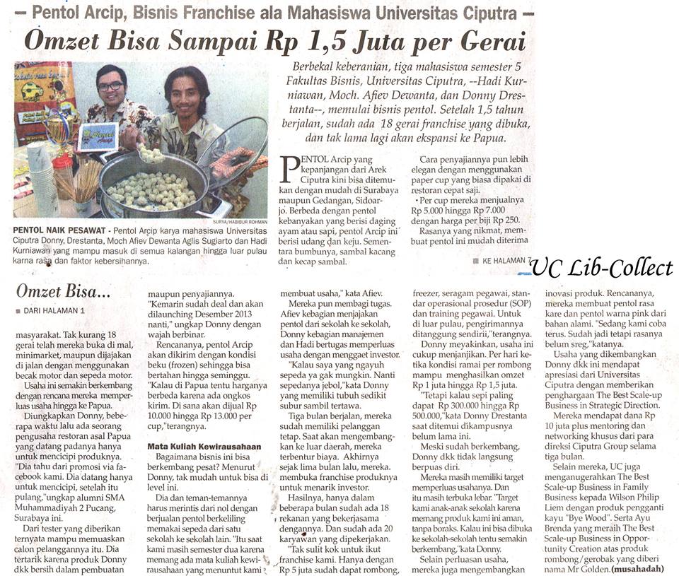 Berbekal keberanian, tiga mahasiswa semester 5 Fakultas Bisnis, Universitas Ciputra, –Hadi Kurniawan, Moch. Afiev Dewanta, dan Donny Drestanta–, memulai bisnis pentol. Setelah 1,5 tahun berjalan, sudah ada 18 gerai franchise yang di buka, dan tak lama lagi akan ekspanis ke papua.