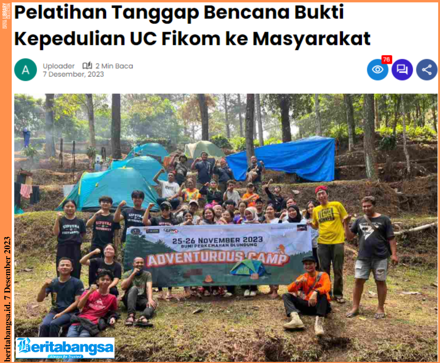 Pelatihan tanggap bencana ini dilakukan sebagai salah satu dari bentuk kepedulian UC Fikom dalam upaya membangkitkan semangat kerelawanan di masyarakat, utamanya pada generasi Z.