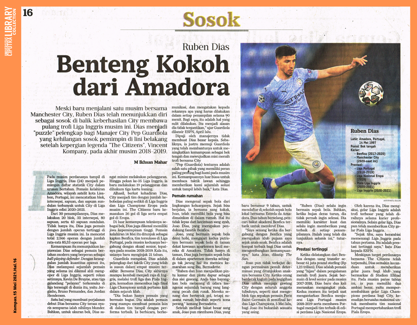 Meski baru menjalani satu musim bersama Manchester City, Ruben Dias telah menunjukkan diri sebagai sosok di balik keberhasilan City membawa pulang trofi Liga Inggris musim ini. Dias menjadi “puzzle” pelengkap bagi Manajer City Pep Guardiola yang kehilangan sosok pemimpin di lini belakang setelah kepergian legenda “The Citizens”, Vincent Kompany, pada akhir musim 2018-2019.