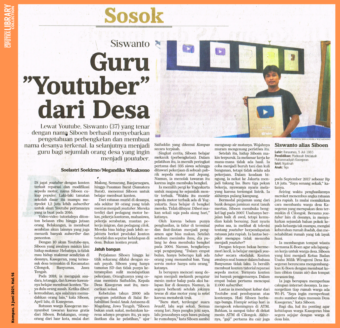 Lewat Youtube, Siswanto (37) yang tenar dengan nama Siboen berhasil menyebarkan pengetahuan perbengkelan dan membuat nama desanya terkenal. Ia selanjutnya menjadi guru bagi sejumlah orang desa yang ingin menjadi youtuber.