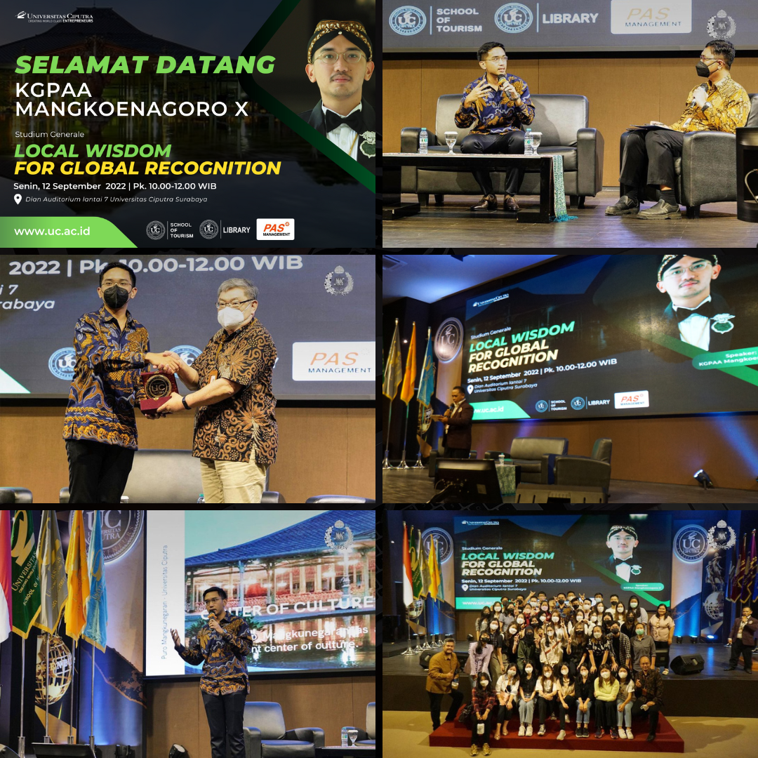 SIJ. KGPAA. Mangkoenagoro X menjadi dosen tamu dan memberikan kuliah umum kepada mahasiswa/i School of Tourism Universitas Ciputra Surabaya pada hari Senin, 12 September 2022 yang lalu.