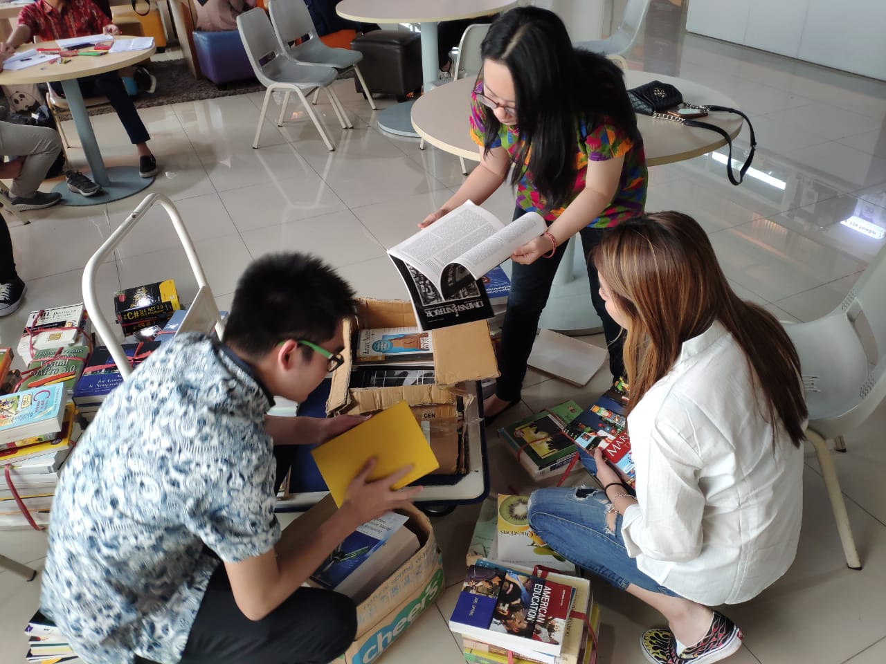 Suasana seleksi buku oleh mahasiswa kelompok Project Partnership Entrepreneurship Essentials
