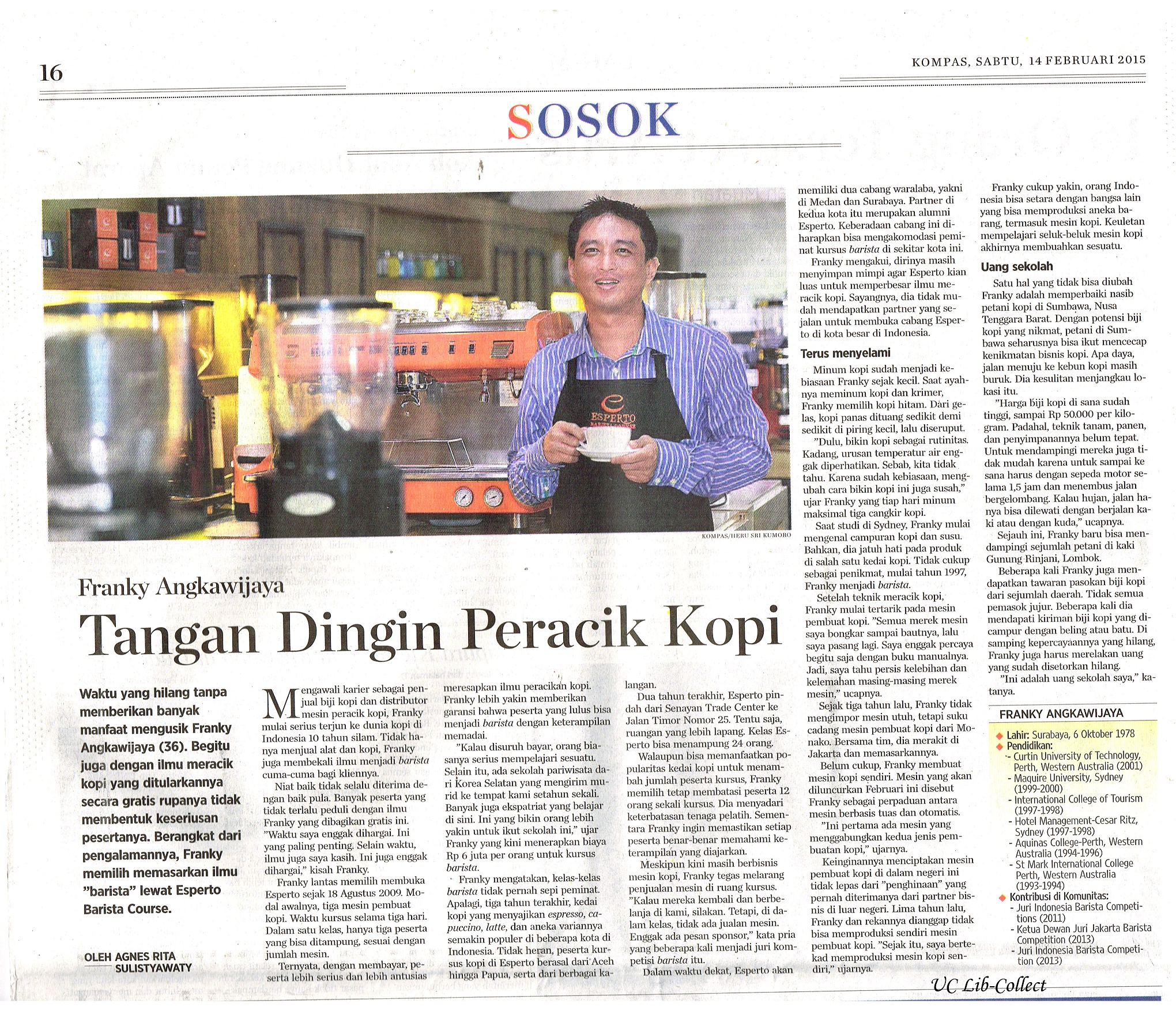Tangan Dingin Peracik Kopi. Kompas. 14 Februari 2015.Hal.16