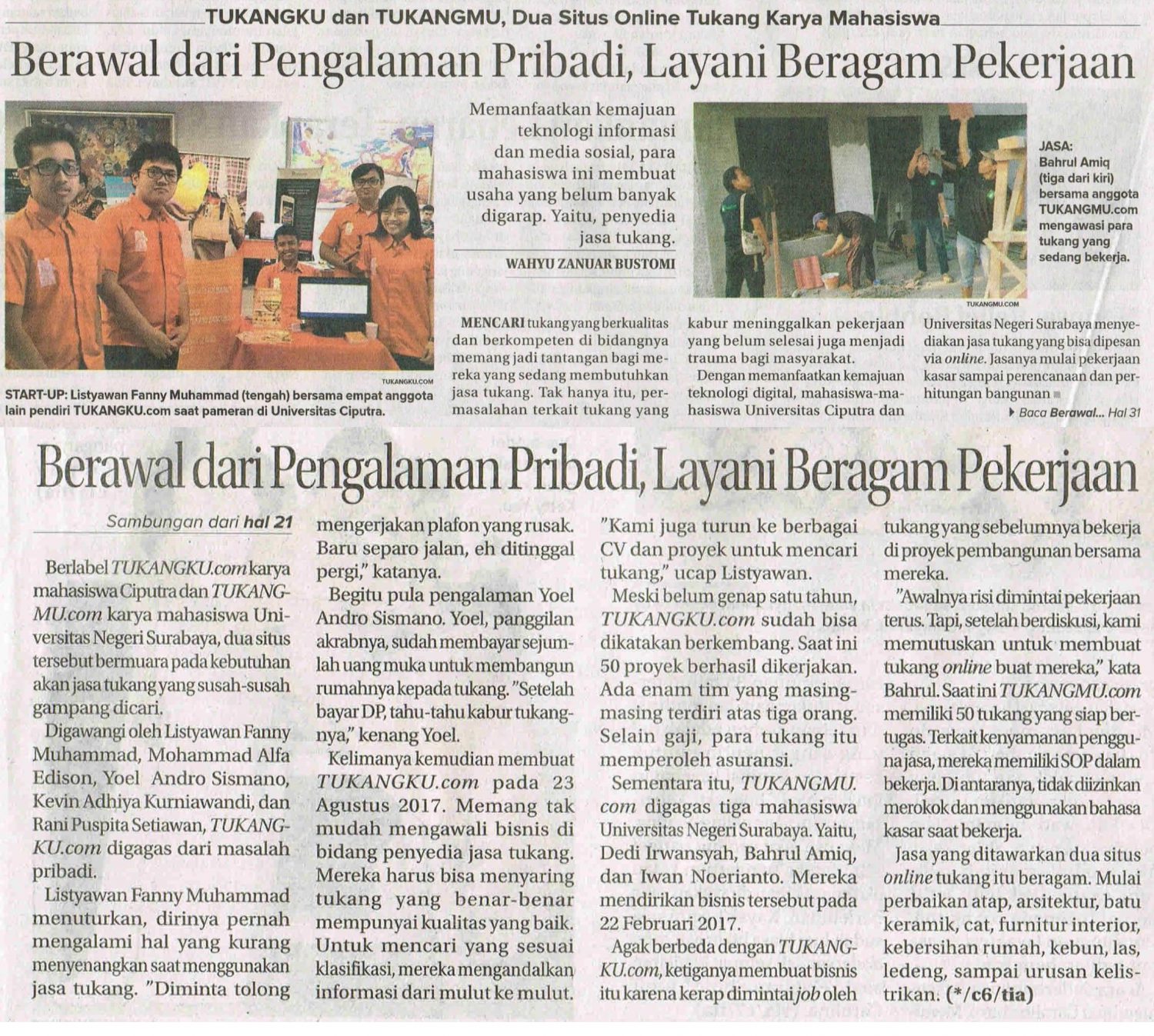 Sementara itu, TUKANGMU.com digagas tiga mahasiswa Universitas Negeri Surabaya. Yaitu, Dedi Irwansyah, Bahrul Amiq, dan Iwan Noerianto. Mereka mendirikan bisnis tersebut pada 22 Febuari 2017.