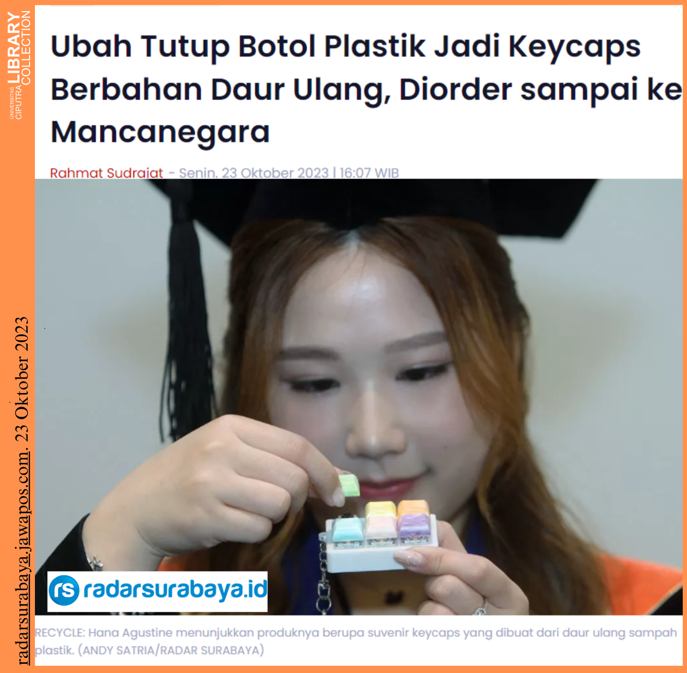 “Awalnya hobi, tapi kepikiran kenapa nggak pakai tutup botol plastik bekas untuk buat keycaps mechanical keyboard,” ujar Hana.