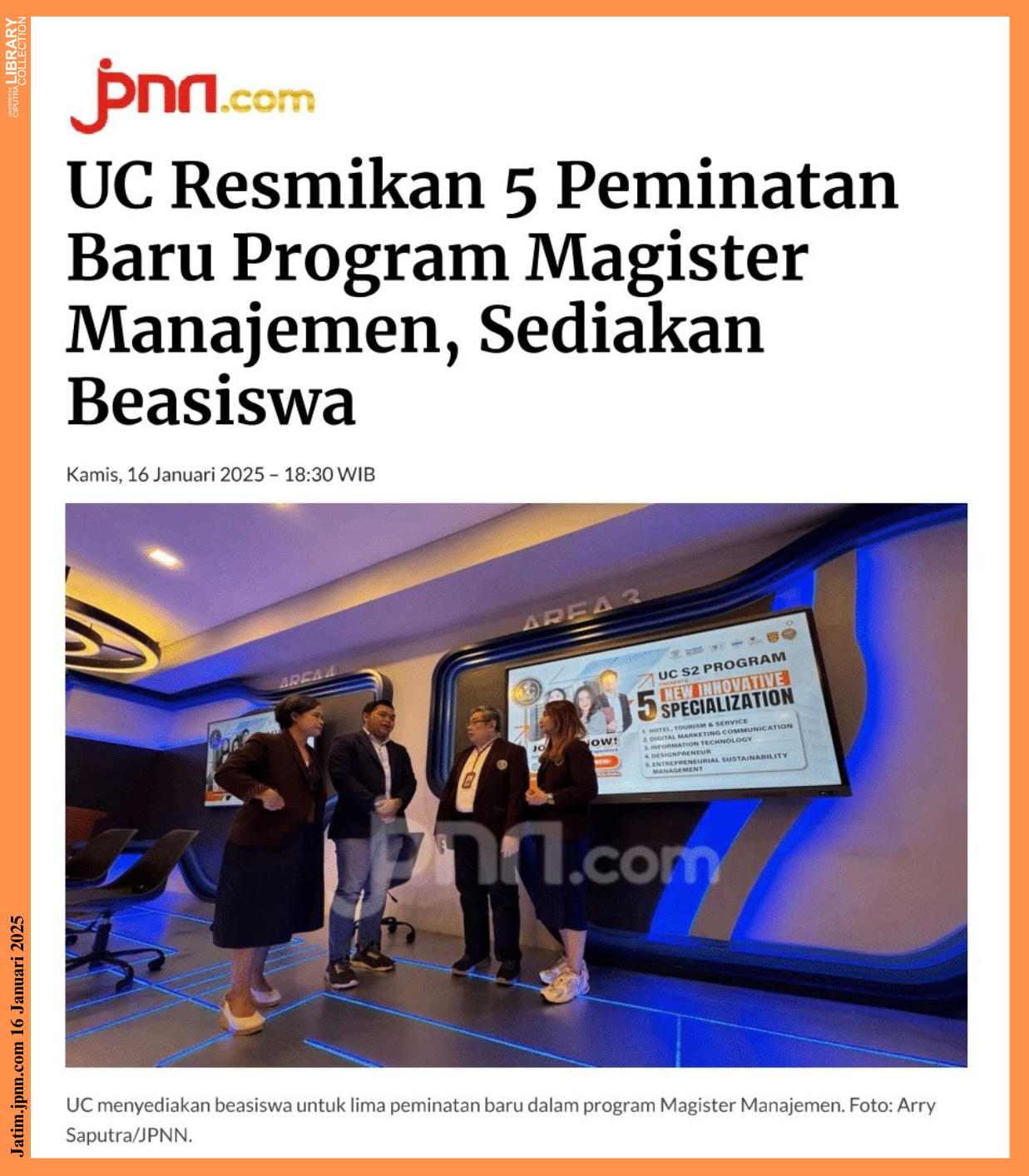Sumber berita : https://jatim.jpnn.com/jatim-terkini/34793/uc-resmikan-5-peminatan-baru-program-magister-manajemen-sediakan-beasiswa