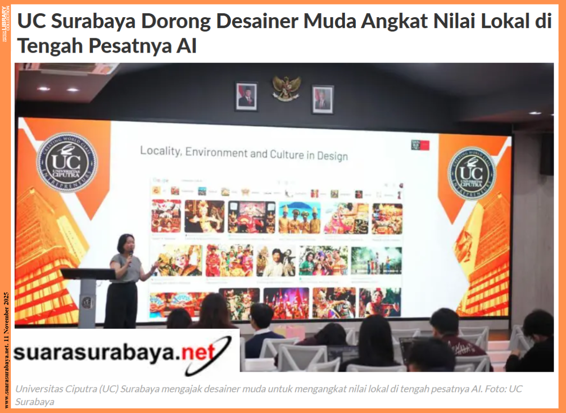 Universitas Ciputra (UC) Surabaya mengajak desainer muda untuk mengangkat nilai lokal di tengah pesatnya Generative Artificial Intelligence (GenAI) dalam industri kreatif global.