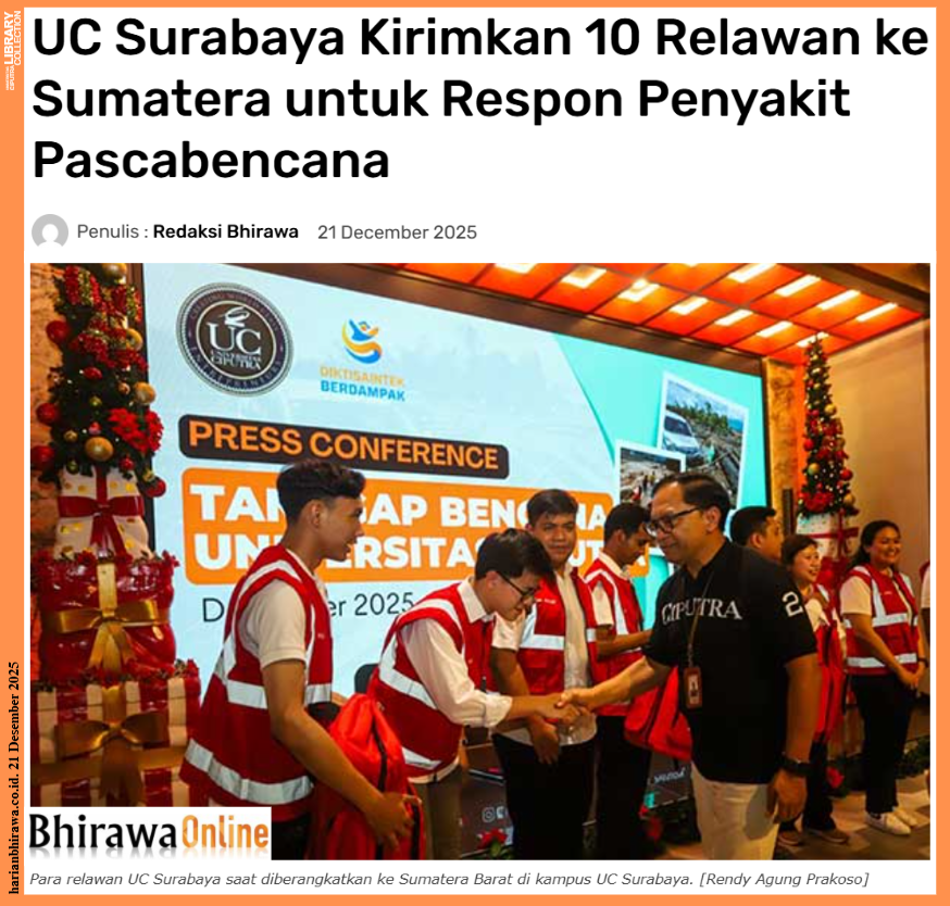 Sumber:https://harianbhirawa.co.id/uc-surabaya-kirimkan-10-relawan-ke-sumatera-untuk-respon-penyakit-pascabencana/