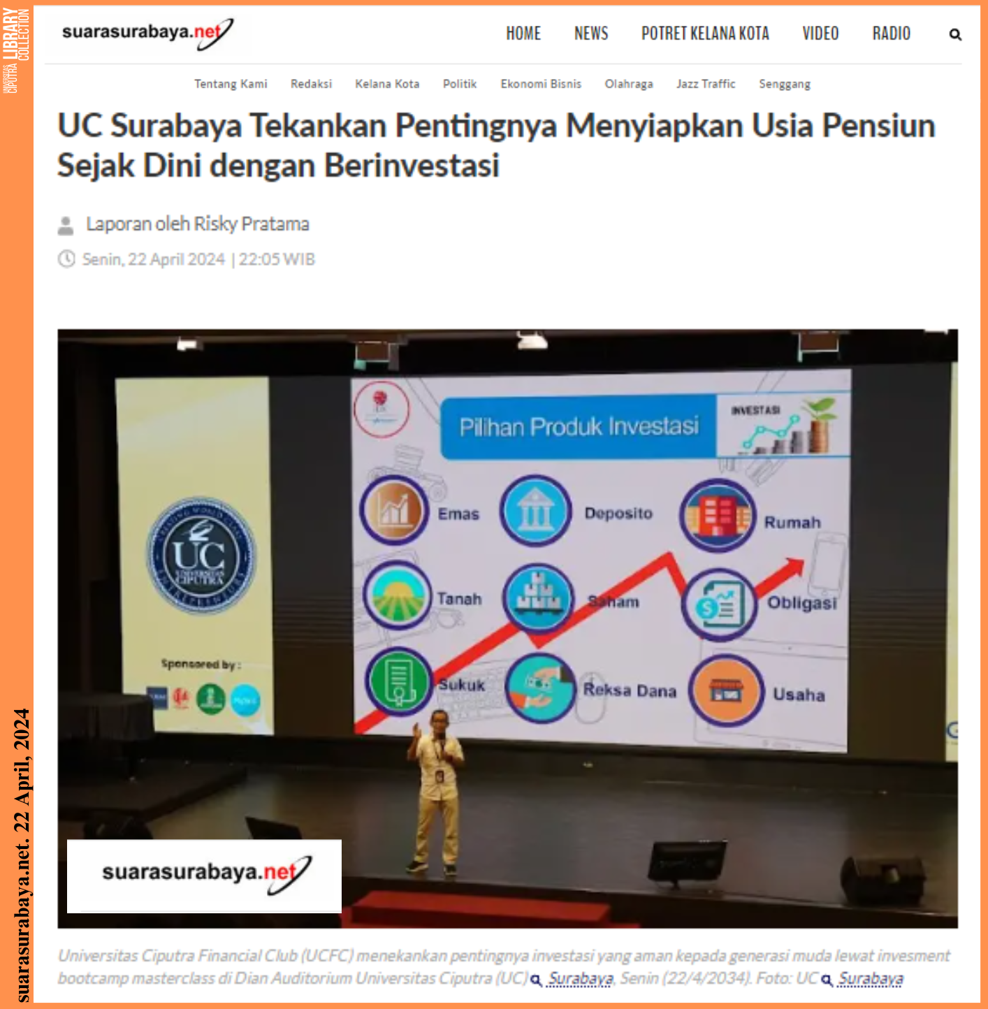 Sumber: https://www.suarasurabaya.net/ekonomibisnis/2024/uc-surabaya-tekankan-pentingnya-menyiapkan-usia-pensiun-sejak-dini-dengan-berinvestasi/