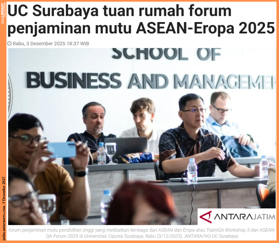 Surabaya (ANTARA) – Universitas Ciputra (UC) Surabaya menjadi tuan rumah forum penjaminan mutu pendidikan tinggi yang melibatkan lembaga dari ASEAN dan Eropa atau TrainIQA Workshop 3 dan ASEAN-QA Forum 2025.