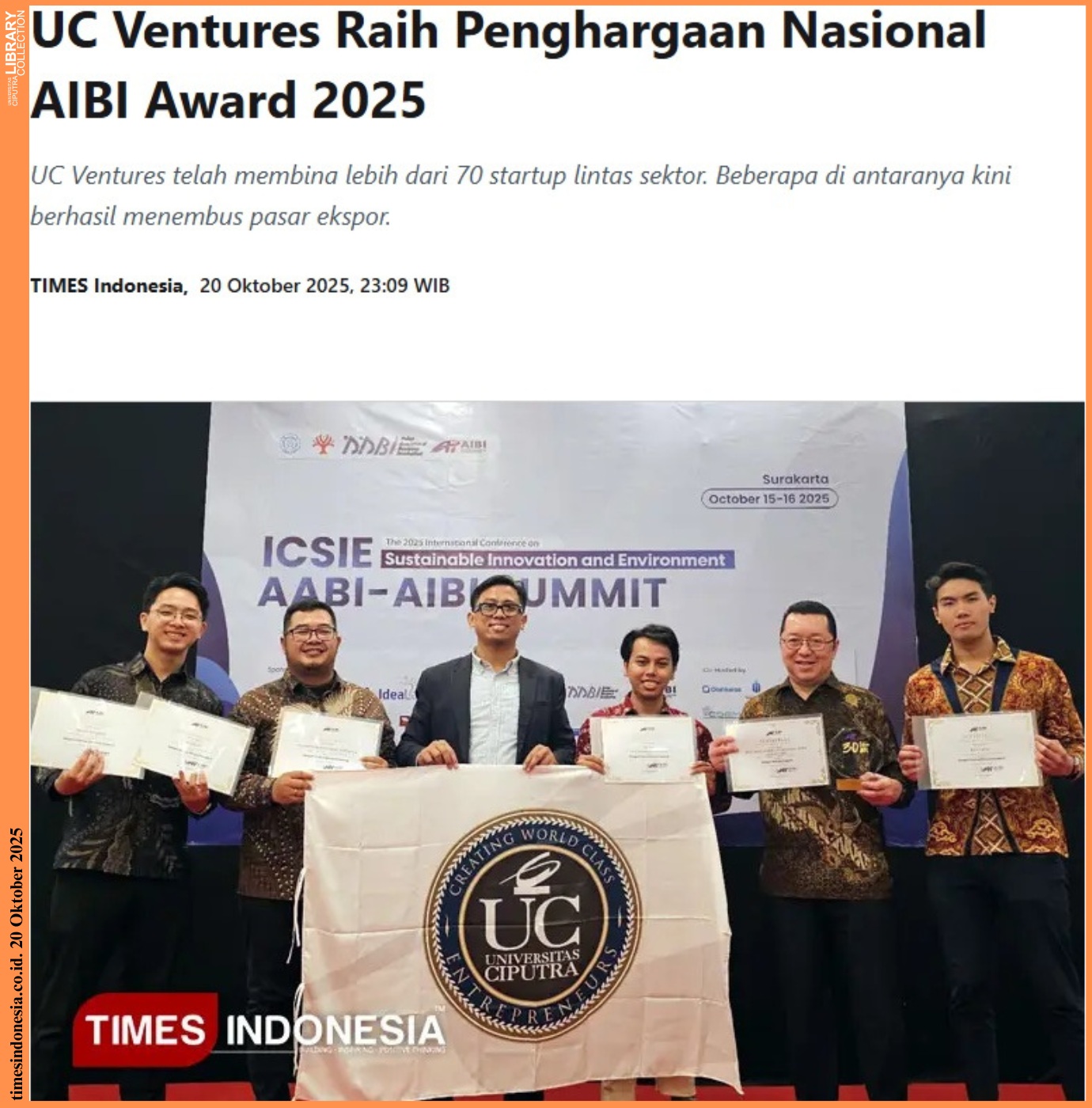 Sumber: https://timesindonesia.co.id/pendidikan/560888/uc-ventures-raih-penghargaan-nasional-aibi-award-2025