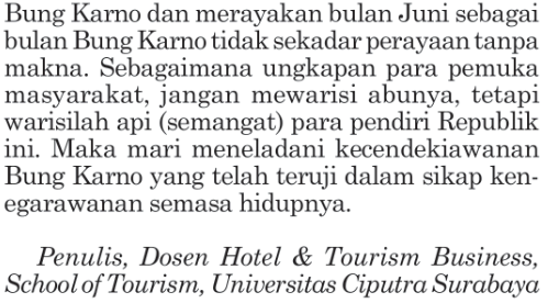 Bung Karno, Negarawan Cendekiawan. Bali Post. 6 Juni 2022. Dewa GS. HTB