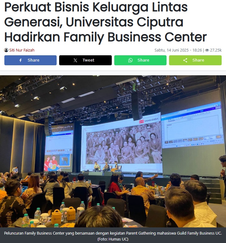 Universitas Ciputra Luncurkan Family Business Center, Fokus Perkuat Bisnis Keluarga. beritajatim.com. 16 Juni 2025