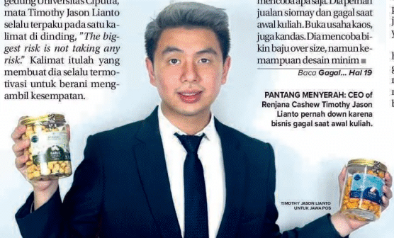 Jatuh Bangun Timothy Jason Lianto Buka Usaha. Gagal Berkali-kali, Bisa Bangkit berkat Mete. Jawapos. 25 November 2025. Hal.13
